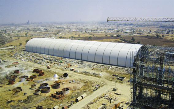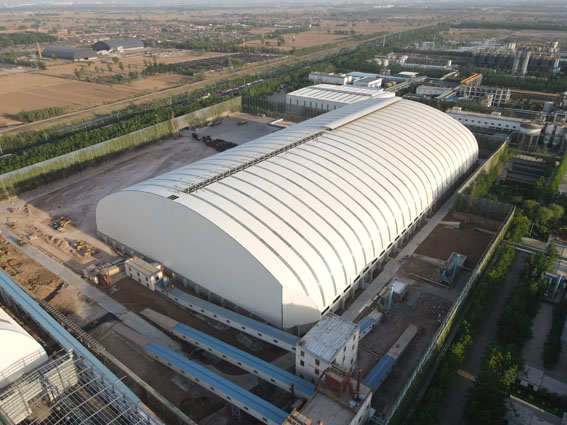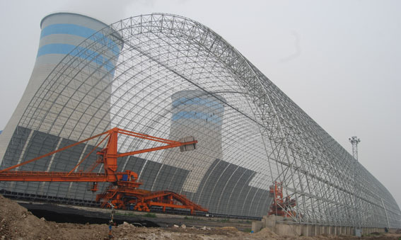 具有桿系和殼體雙重受力的特點(diǎn),提出了設(shè)計(jì)和分析時(shí)合理的結(jié)構(gòu)形式、利用三心圓滿足儲(chǔ)料倉(cāng)凈空的要求。利用仿真分析技術(shù)設(shè)計(jì)、控制了含鋼量。安裝:采用塔架支撐、逆安裝、單邊起步等工藝完成起步單元做成穩(wěn)定結(jié)構(gòu)承受施工荷載的高空散裝施工工藝,保證了柱面網(wǎng)殼在安裝過(guò)程中的質(zhì)量和安全。